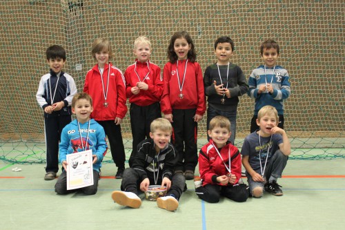 Am frühen Sonntag morgen erreichten unsere Kleinsten in eigener Halle einen sehr guten zweiten Platz. Für unsere Jungs war es das erste Turnier in einer sooooooooo großen Halle. Trotzdem zeigten sie keine Scheu und Angst, sondern waren mit viel Eifer und Einsatz dabei. Einzig gegen den späteren Turniersieger unterlagen wir mit ein wenig Pech. Es war ein schöner Sonntagvormittag, an dem auch die Eltern und Zuschauer ihre Freude hatten.